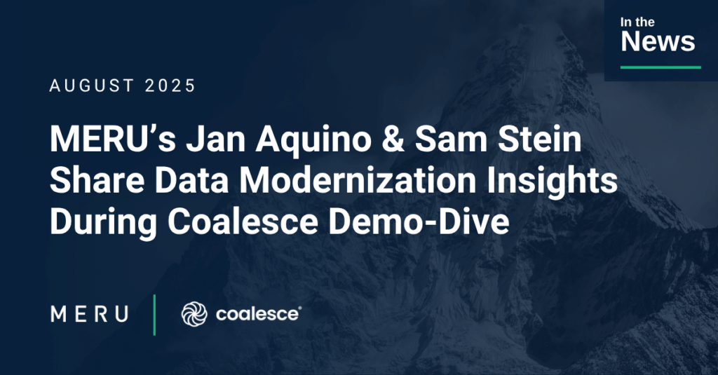 Jan Aquino and Sam Stein of MERU’s Data Insights Practice recently joined Coalesce for a virtual Demo-Dive session titled “Enabling Actionable Insights & AI at Scale With a Modern Data Infrastructure.” During the session, they…