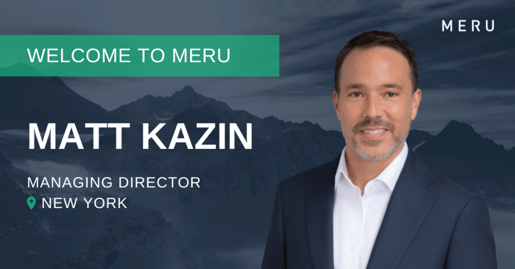 We are thrilled to welcome Matt Kazin to MERU. Matt joins MERU as a Managing Director based out of our New York office.