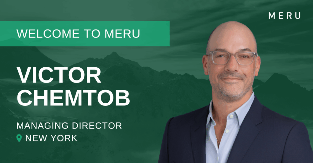 We are thrilled to welcome Victor Chemtob to MERU. Victor joins MERU as a Managing Director based out of our New York office.